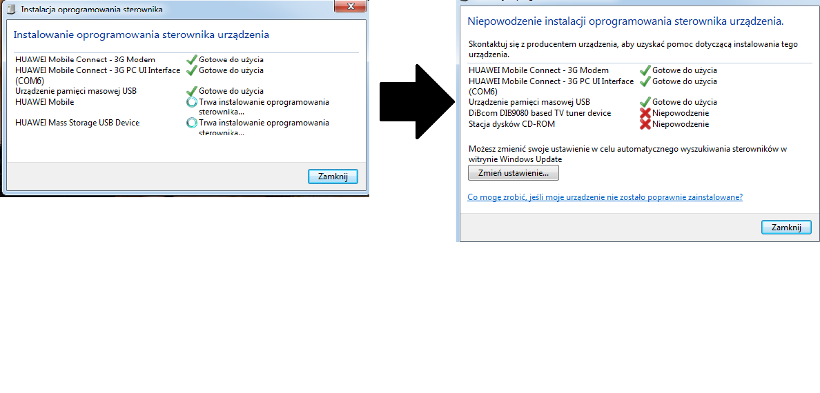 Nie dawno zrobilem formata na laptopie i od kilku dni mecze sie z odpaleniem blueconnecta. Otoż po podlączeniu do usb komputer go wykrywa i normalnie rozpoczyna instalacje. Po tym nastepuje instalacja sterownikow, ktora konczy sie niepowodzeniem. Nie moge dojsc dlaczego. PONIZEJ SCREEN Z INSTALACJI