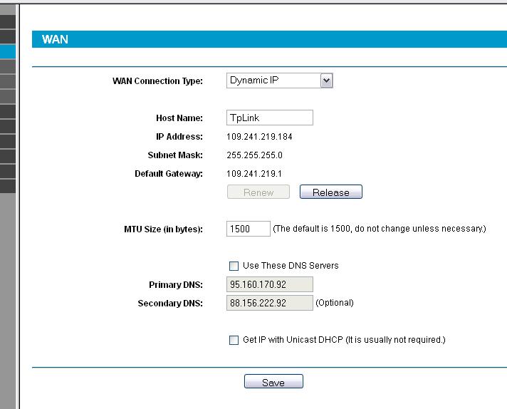 Klikam w konfiguracji TP-Link-a RELEASE i potem RENEW (zdjęcie 2).