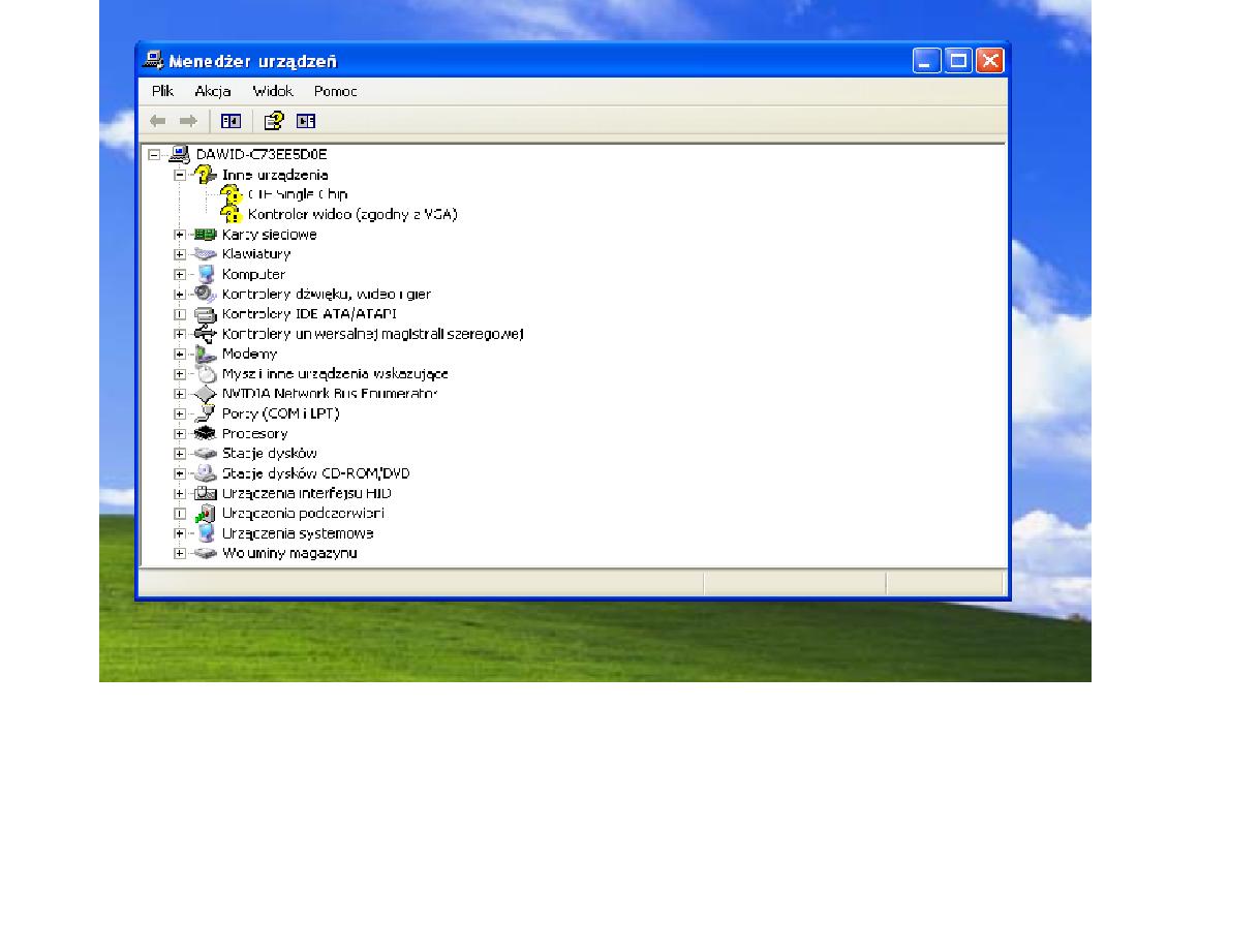 Mam Windows XP i niestety nie mogę zobaczyć karty graficznej. Gdy wchodzę w Start- Mój komputer-Właściwości-Sprzęt-Menedżer urządzeń. To niema karty graficznej