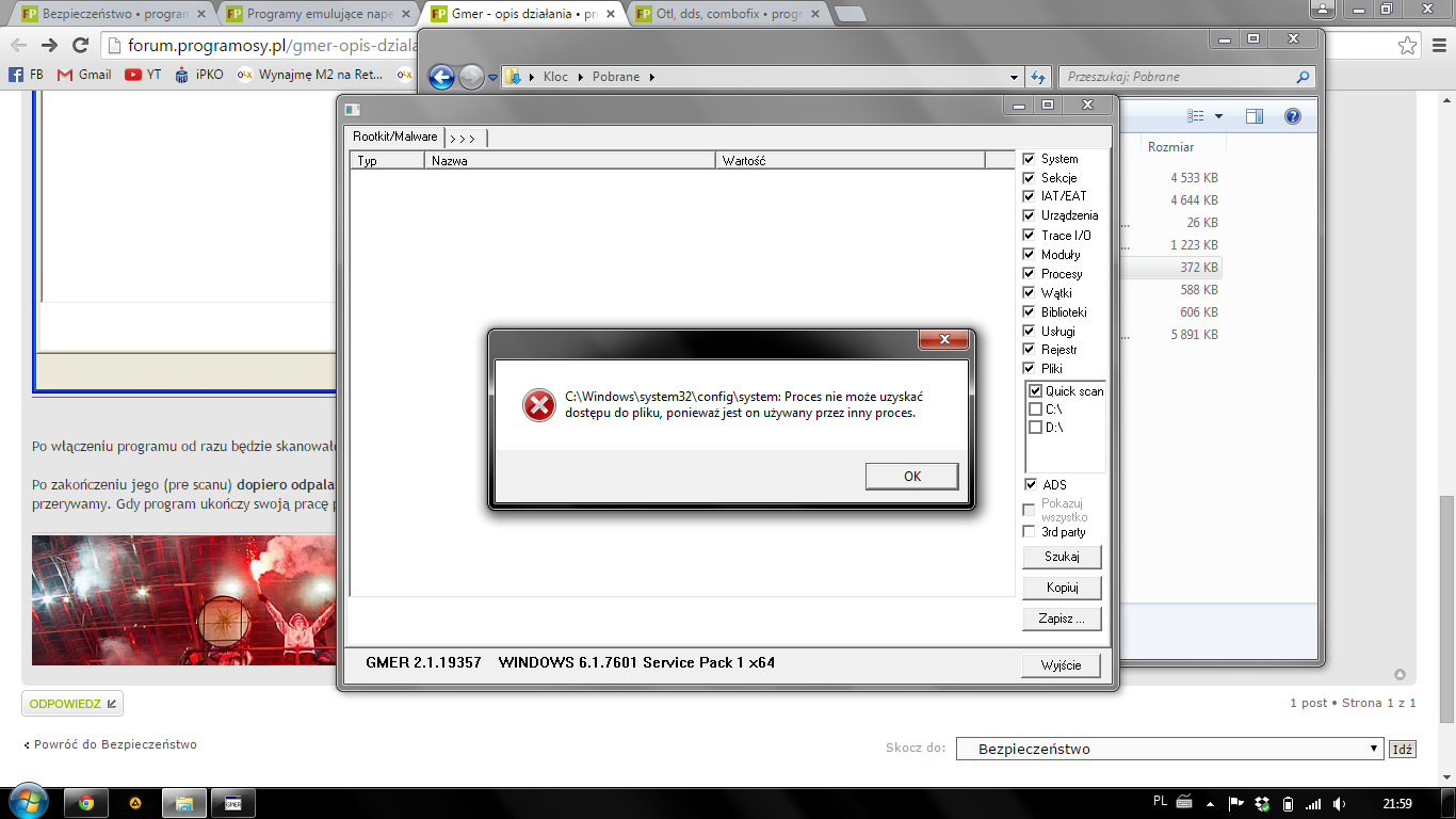 postawiłem system, zacząłem instalować potrzebne mi programy i pojawił się problem. Przestał mi działać CTRL i kursor "do góry". Nie mogę też skorzystać z ALT CTRL DEL, ctrl+z/c/v. Poniżej dołączam 3 logi i scr błędu, który wyskoczył podczas pracy w programie Gmer. Skanowałem AVG i nic nie wykrył.