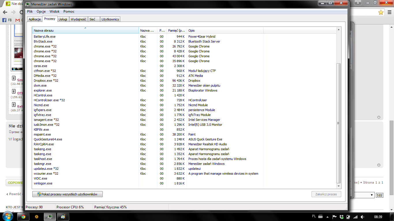 Wrzucam jeszcze scr procesów i "msconfig". Laptop to ASUS x301, win7