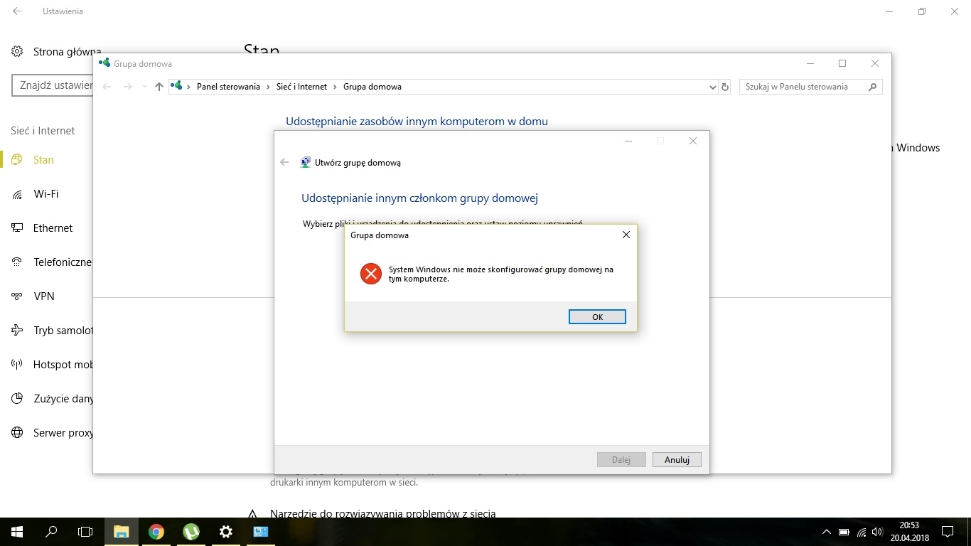 Witam serdecznie,nie mogę utworzyć grupy domowej na laptopie,za każdą próbą założenia wyskakuje monit że nie można skonfigurować grupy na tym komputerze. Czy wiecie jak to ominąć,nie mam już pomysłów .... Windows 10 zainstalowany na nowo i dalej problemy