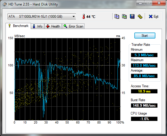 -hdtune, pełne skanowanie i brak bad sectorów;