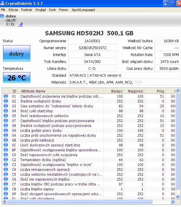 Ściągnij CrystalDiskInfo i wklej screen z tego programu. :wink:
