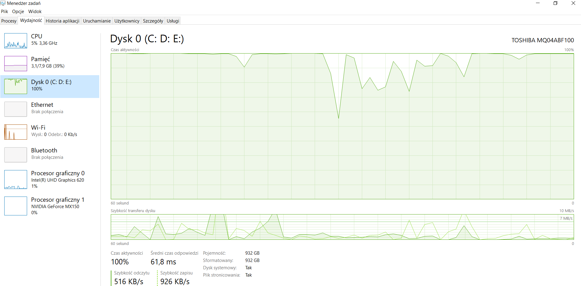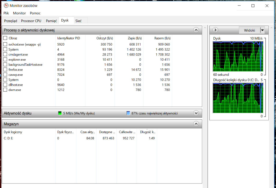 Jak w temacie. Kupiłem nowego laptopa. Strasznie zamulił. Zużycie dysku w menedżerze pokazuje 100%. Sprzęt jest nowy. Dyski w zasadzie puste. Trochę zgłupiałem co robić.