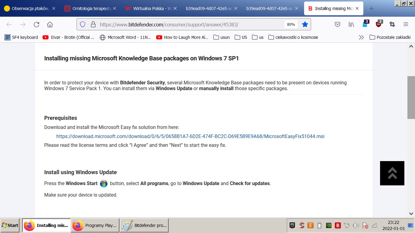 Od pewnego czasu Bitdefender ponawia prośbę o zainstalowanie łatki w Windows. Zainstalowałem ją, po czym Bitdefender ciągle wraca do tego. Nie wiem o co chodzi.