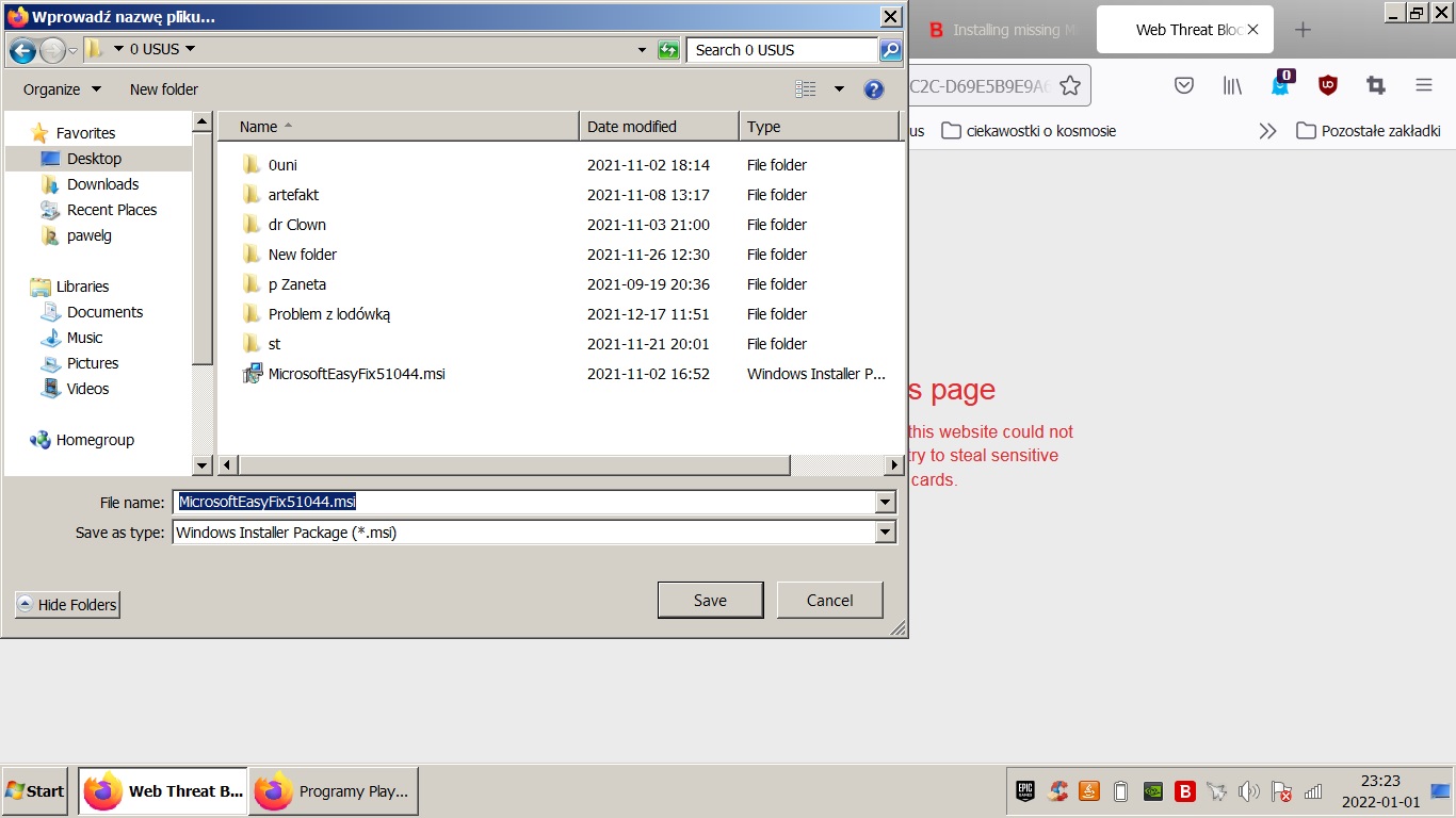 Masz WIN 7, który już nie jest wspierany przez Microsoft, więc oczywiście żadne zainstalowanie łatki nie może się udać.