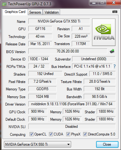 5. Karta graficzna nVidia GeForce VGA PALIT GTX 550 Ti 1GB DDR5 192BIT