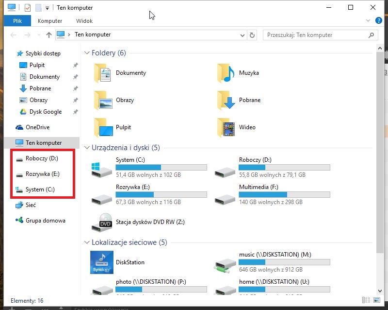 Do dysków chciał bym mieć dostęp przez "Ten komputer"